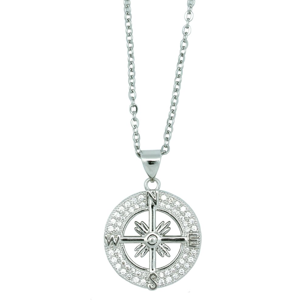 This Compass necklace is adorned with Cubic Zirconia stones