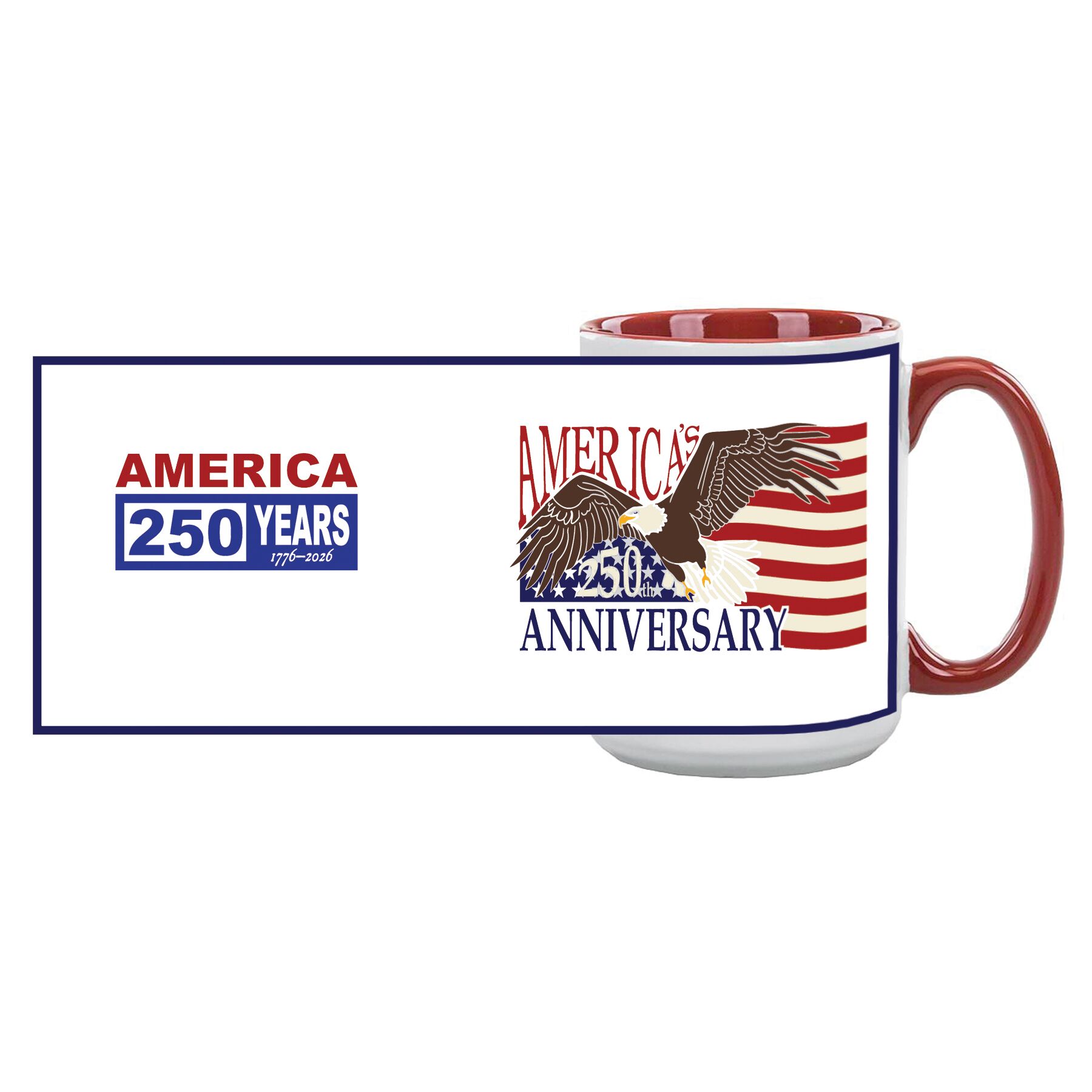Eagle & Flag Mug, celebrating America’s 250 year anniversary. 15 oz mug. 250-MGE