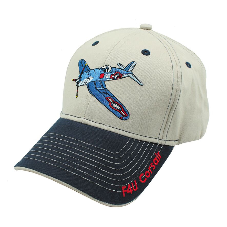 F4U embroidered hat. A Born Aviation Exclusive! Embroidered hats that are brushed cotton with contrasting sandwich bill, sewn eyelets, pre-curved bill and velcro closure.