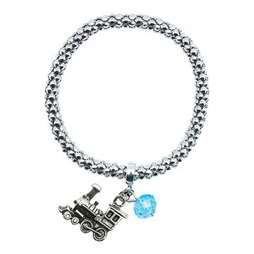 Metal Rope Train Bracelet. Stretchy metal rope bracelet with train charm and assorted colored beads. 1JB-MRB