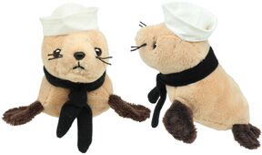 Cuddly, plush Sneaky Seal dressed as a sailor, 5in. This items is too small for a name drop. SA-NSEAL