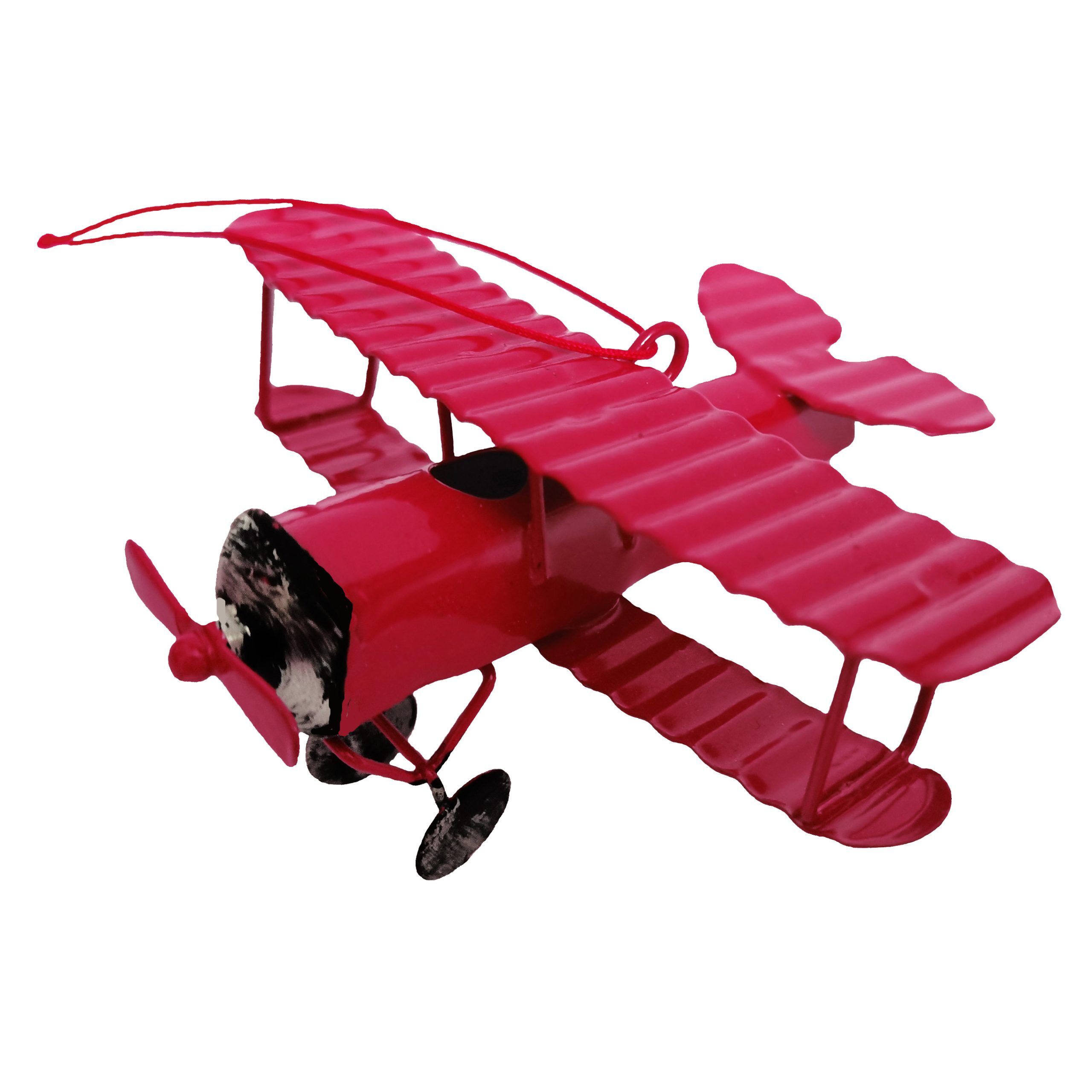 Red biplane Christmas ornament made of Tin. 3 3/4 in. Individually boxed. OR-RTBP