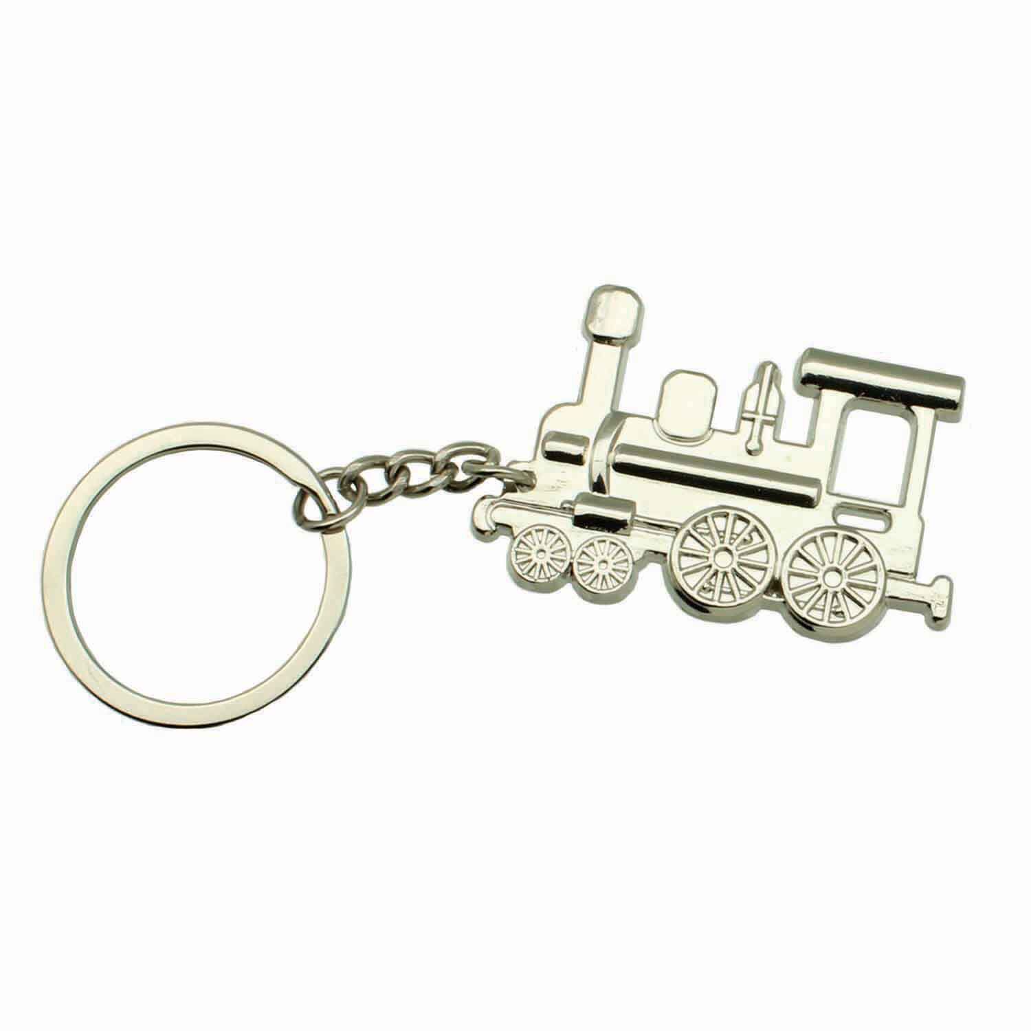 Silver steam engine keychain. This two-sided steam engine is silver plated and 4 inches long. 1KC-SST