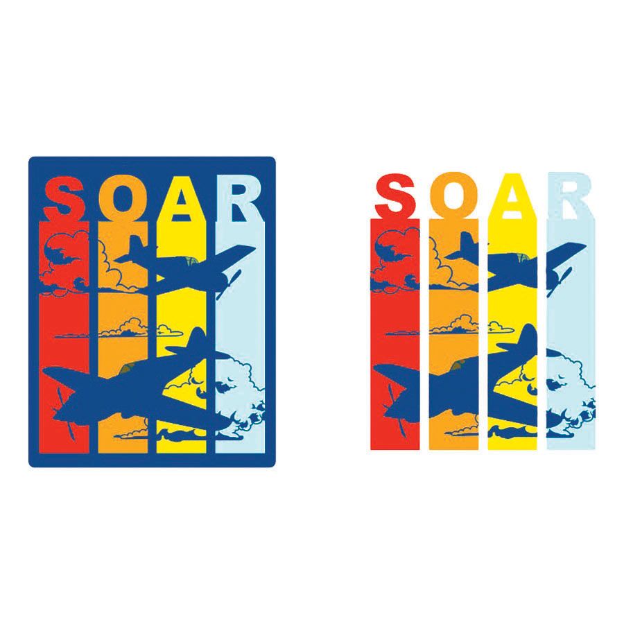 Soar epoxy 2D magnet. The bright colored text and the stipes below are raised on a higher level than the navy background. Entire magnet covered with a epoxy. 3 x 2 in. MA-SOAR