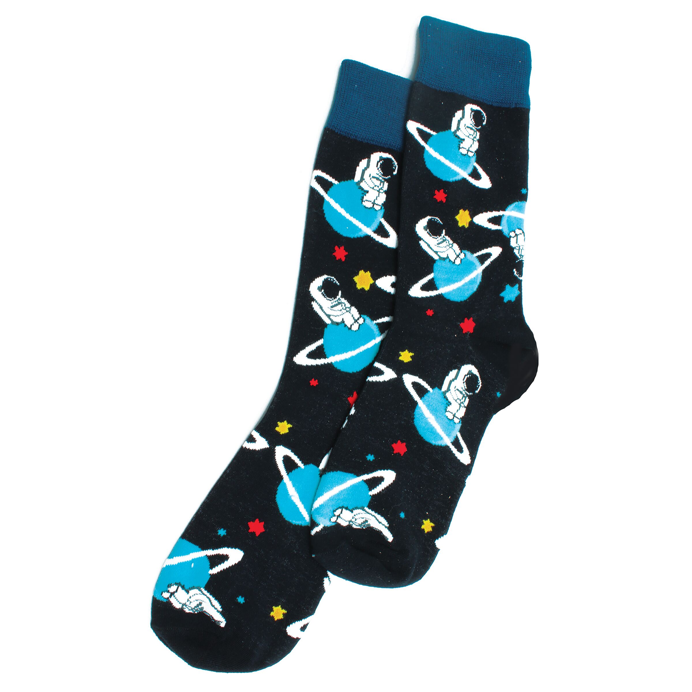 Space planet sock. A astronaut sitting on a planet sublimated onto a pair of polyester socks. One size fits most. AN-SPS