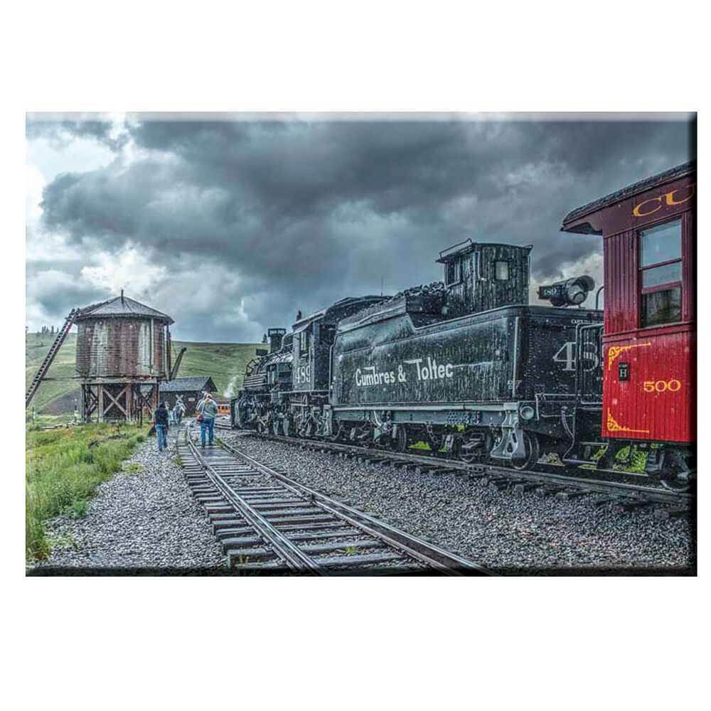 Steam Train pulling up to a Water Tower. Magnet 2 x 3 inches. Photo taken by Chris Burger. 1MAB-WT